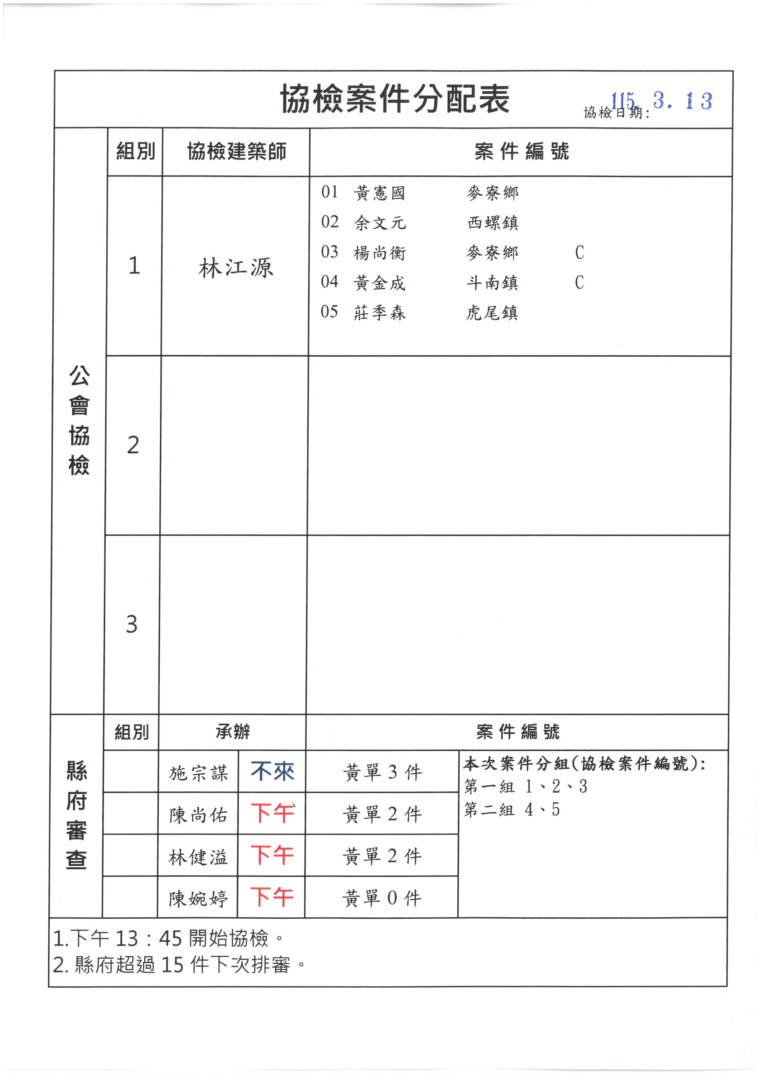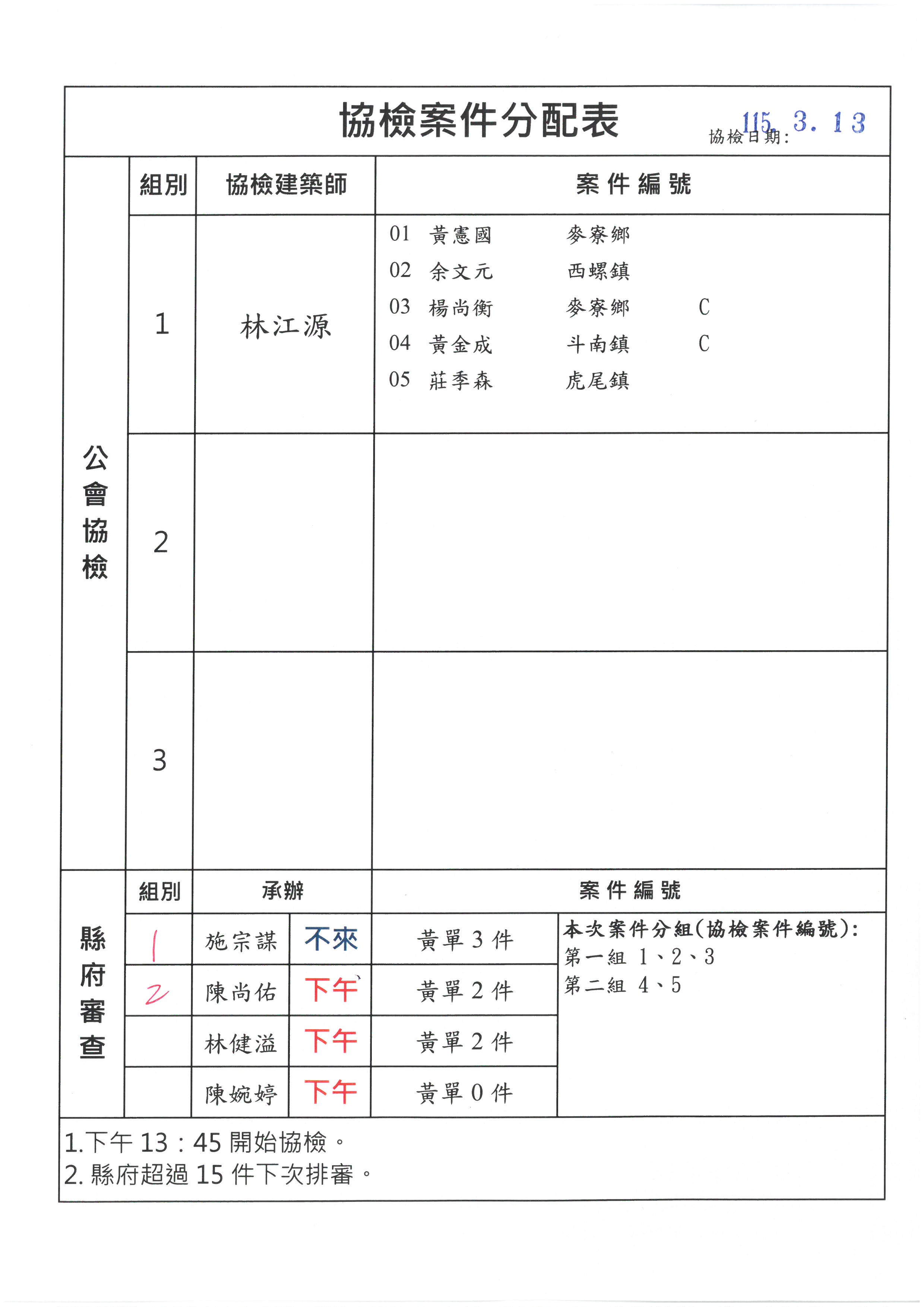 (二)排審案件依到會掛號時間先後排序,縣府發照以15 件為限,公所發照不限件數。