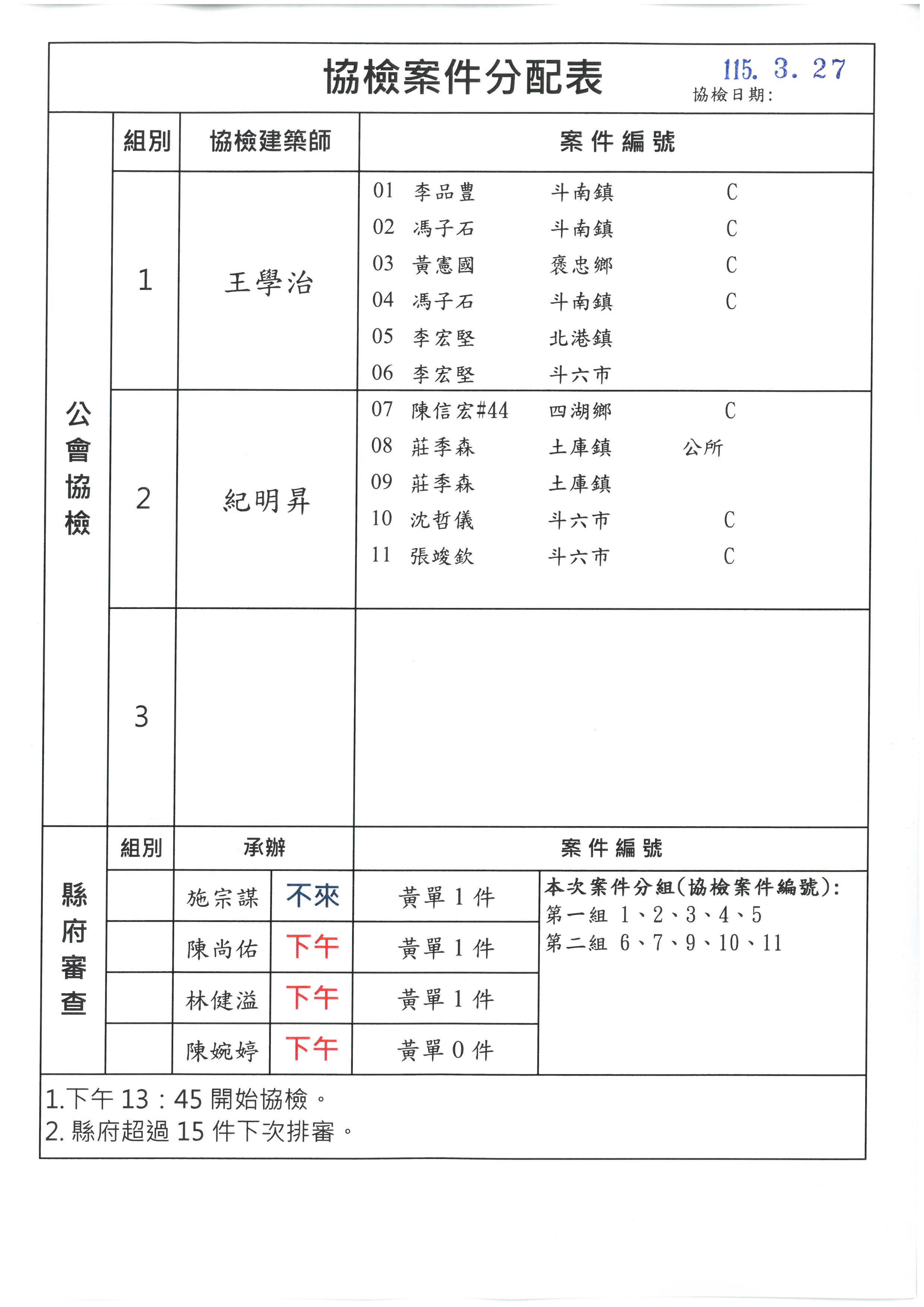 115.03.27【協檢分組】及【承辦分組】