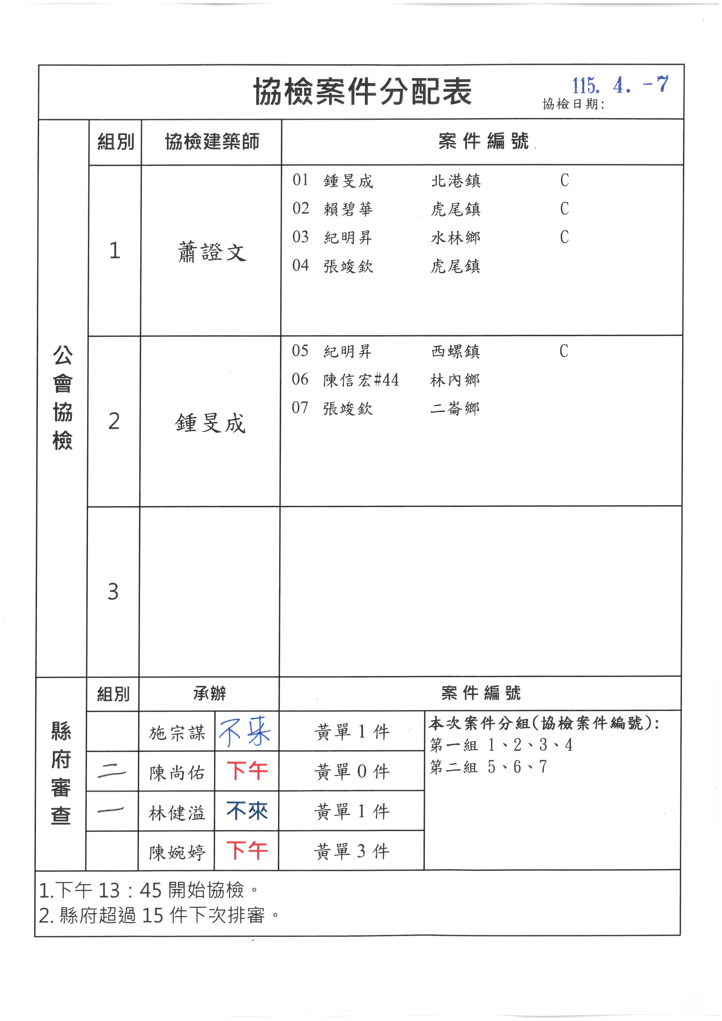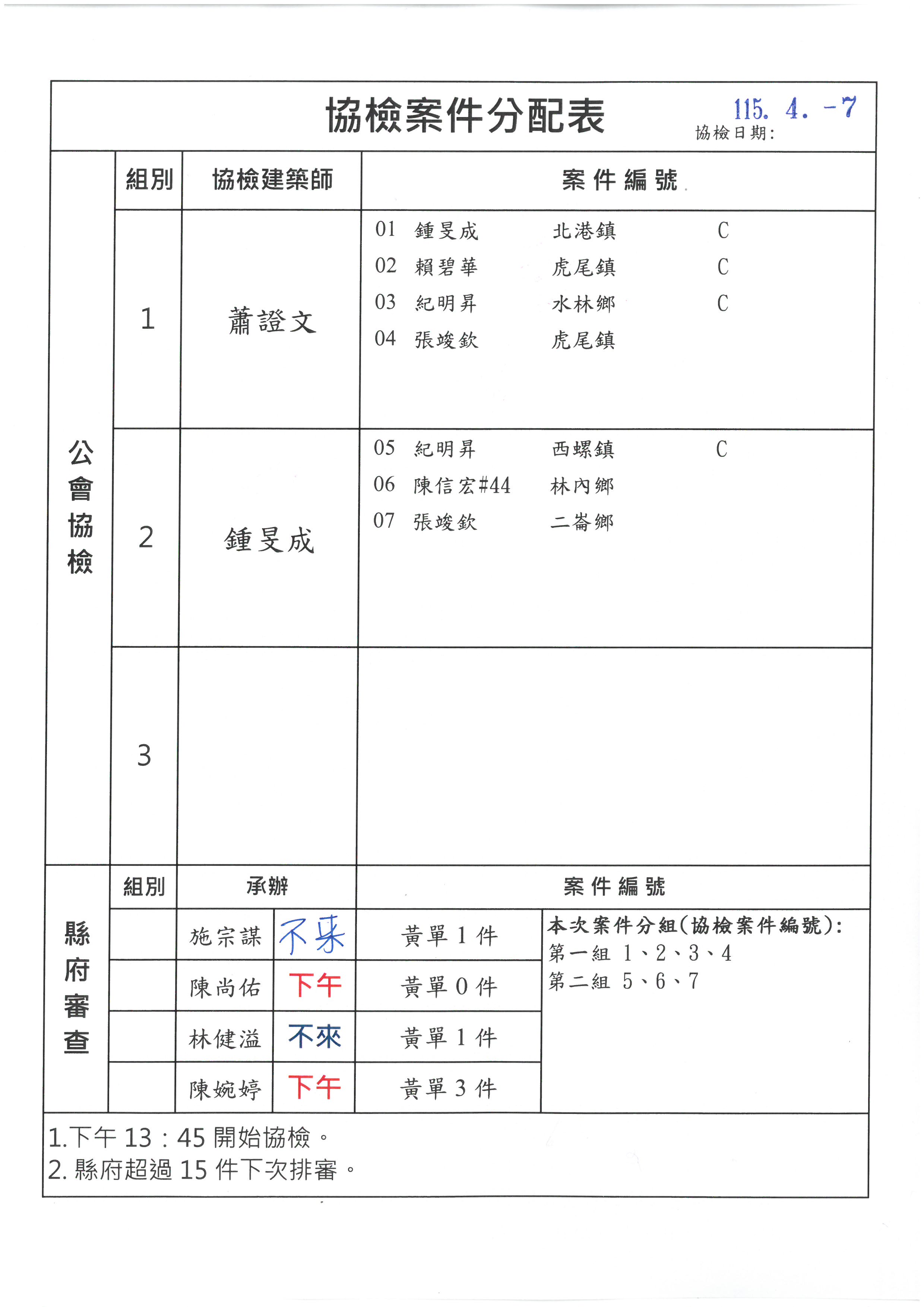 115.04.07【協檢分組】及【承辦分組】