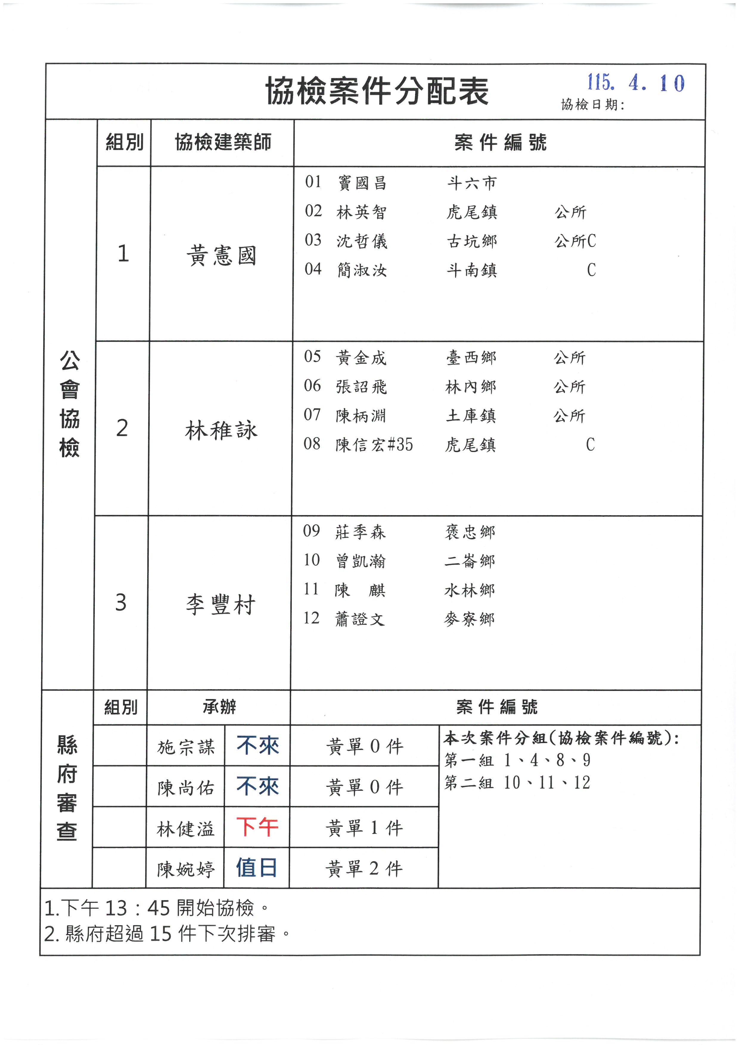 115.04.10【協檢分組】及【承辦分組】